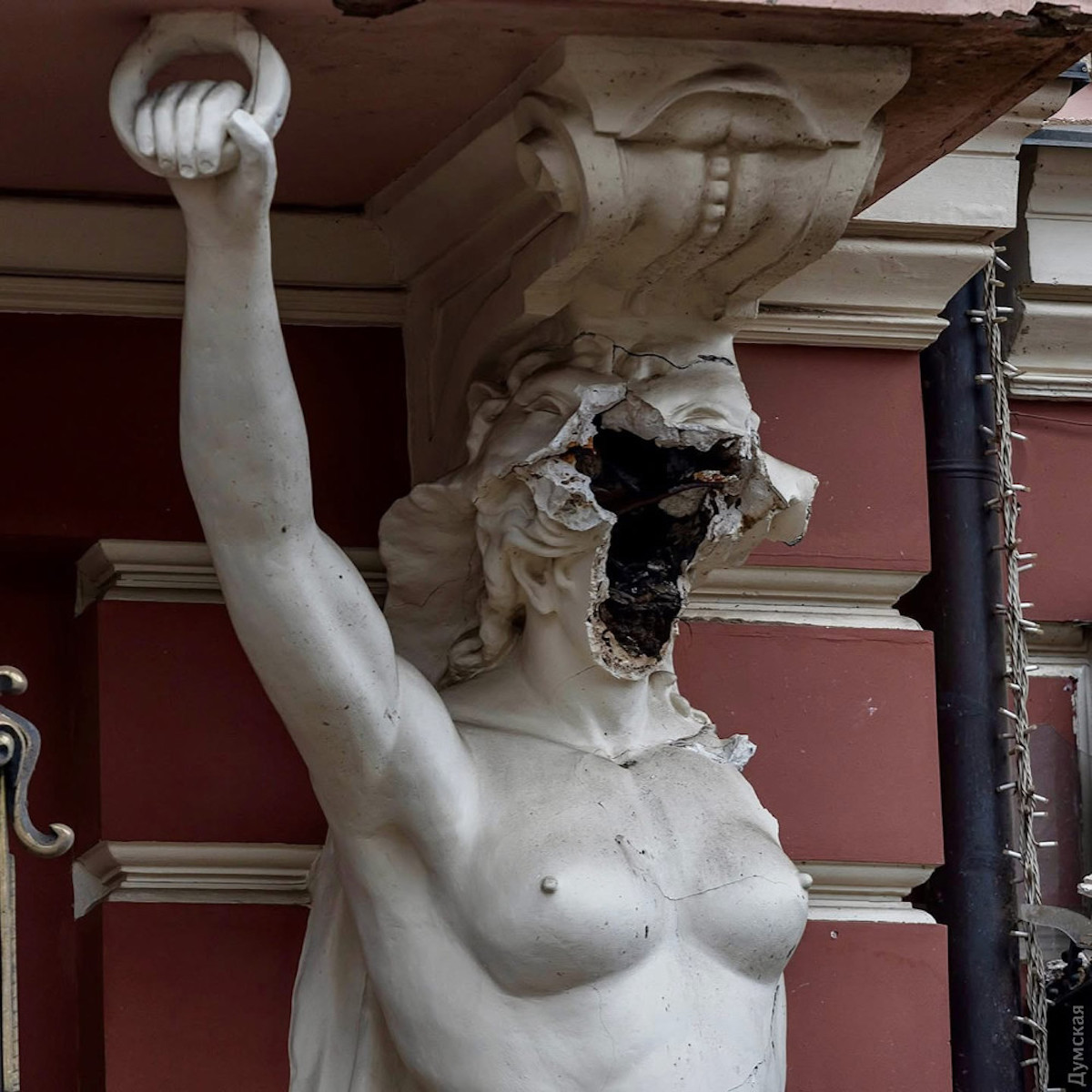 Значно постраждалий від російського обстрілу пів року тому готель «Бристоль» в Одесі відновлюють, і увагу мешканців привернуло нове обличчя каріатиди на фасаді, повідомляють місцеві медіа Думская та Море людей.