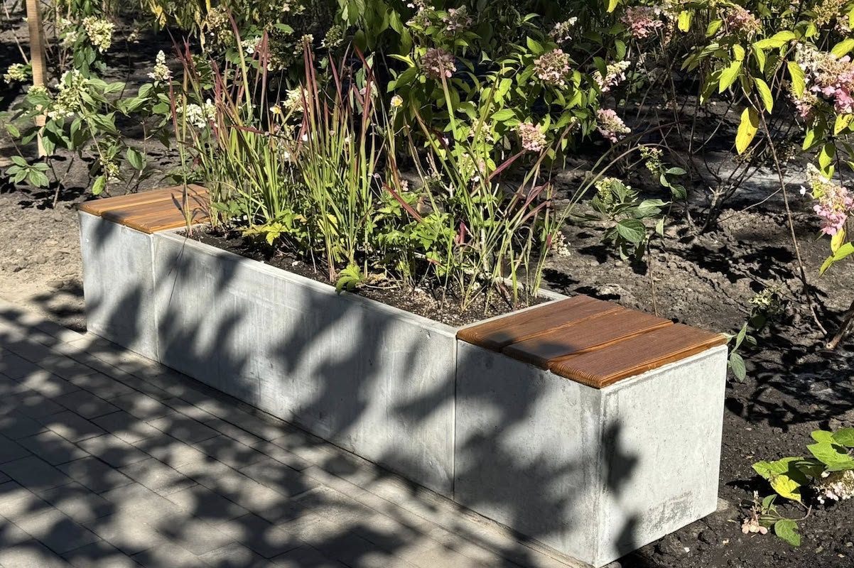 На вулиці Виговського 20 у Подільському районі висадили багаторічні трави, кущі та дерева. Також встановили лави-квітники, повідомляє Київзеленбуд.