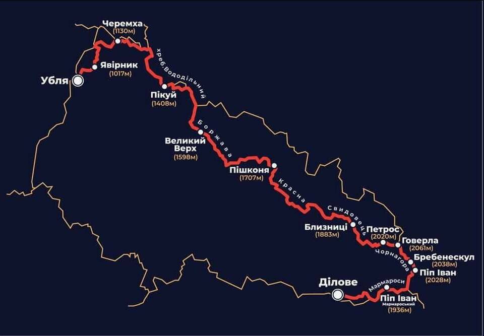 Шлях простягнеться від Малого Березного через карпатські хребти до Ясіні та Румунії, із виходами до словацького, угорського й польського кордонів. Для зручності туристів передбачені різні рівні складності. 31 серпня відкриють першу ділянку маршруту – 55 км від Усть-Чорної до Ясіні, через Кедринське лісництво – Турбатське лісництво – витоки р.Чорна Тиса – Чорнотисянське лісництво.