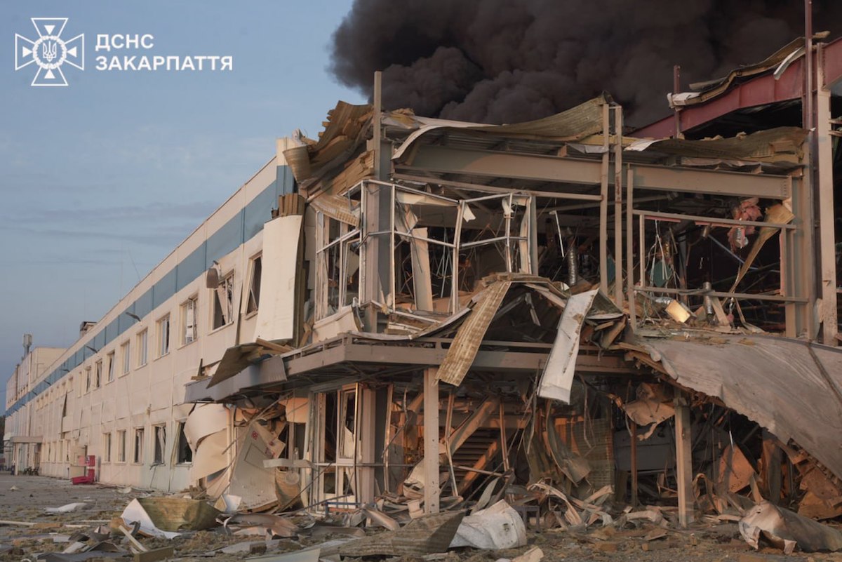 Крилатими ракетами росяни ударили по одному з підприємств у Мукачеві. Зруйновано складські приміщення, 15 людей дістали травми, повідомив голова ОВА Мирослав Білецький. Через сильний дим від пожежі мешканцям радять не виходити з дому.