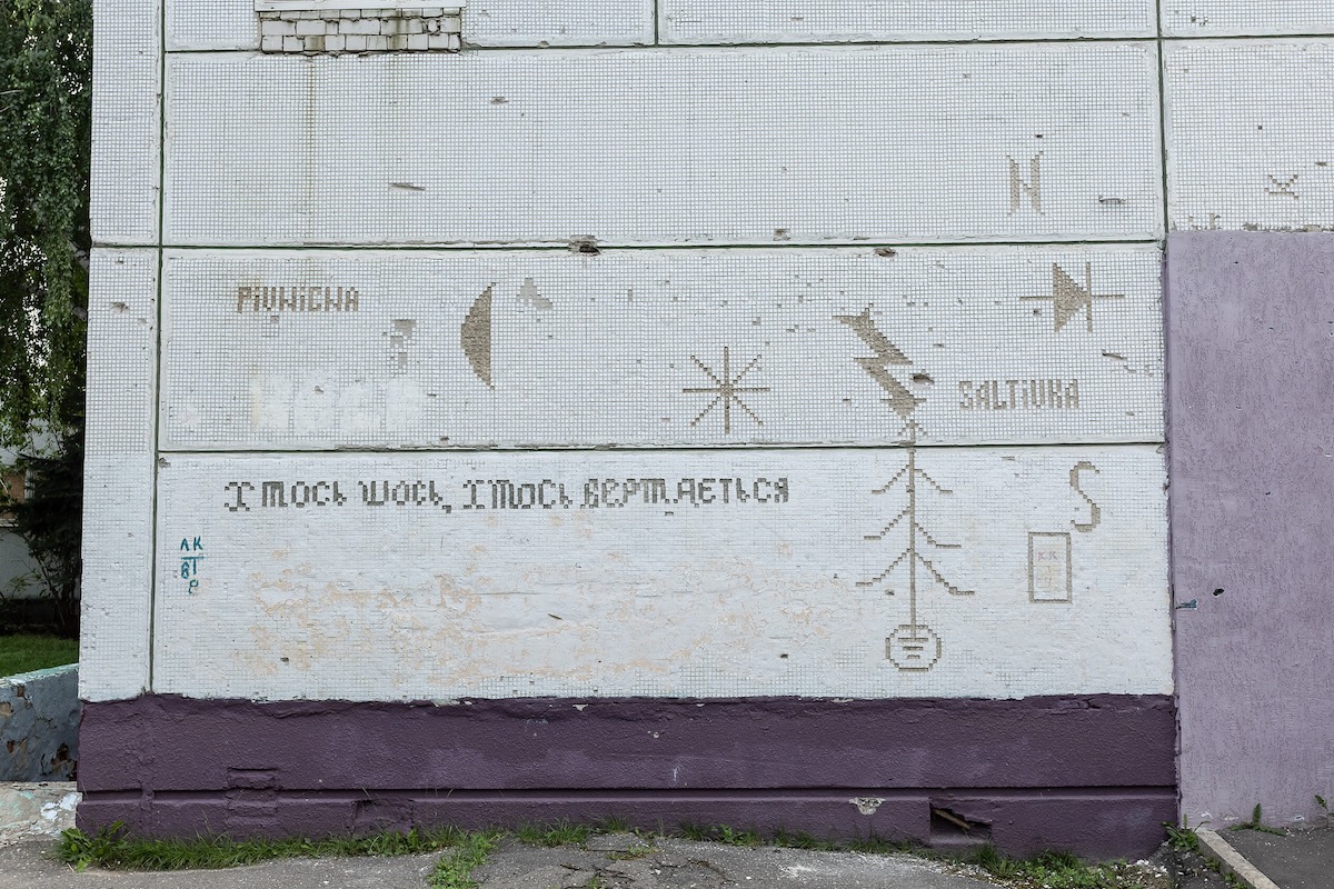 «Цю техніку я помітив у Харкові 10 років тому, і вона здалася мені особливою. Ця візуальна мова нагадує малюнки у зошиті в клітинку, а також форми візерунків в українській вишивці і ткацтві. По суті, це татуювання на спорудах», — пояснює Віталій Кохан.