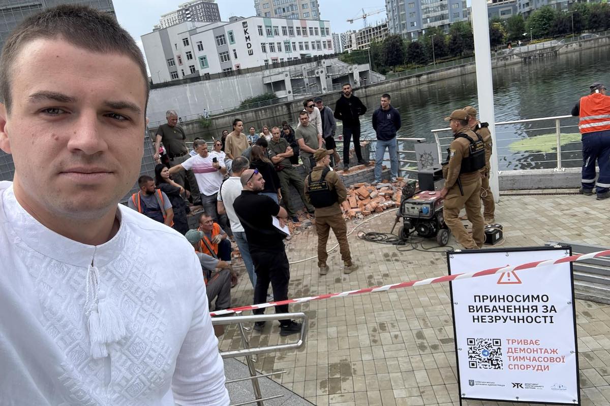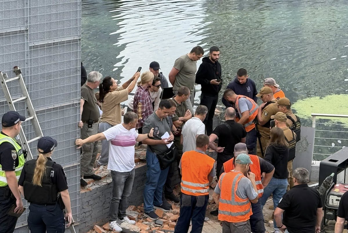 На набережній Дніпра, яку перекрили парканами та огорожами мешканці житлового комплексу RiverStone, комунальники розбирають цегляну стіну, повідомляє директор Департаменту територіального контролю Києва Михайло Буділов.