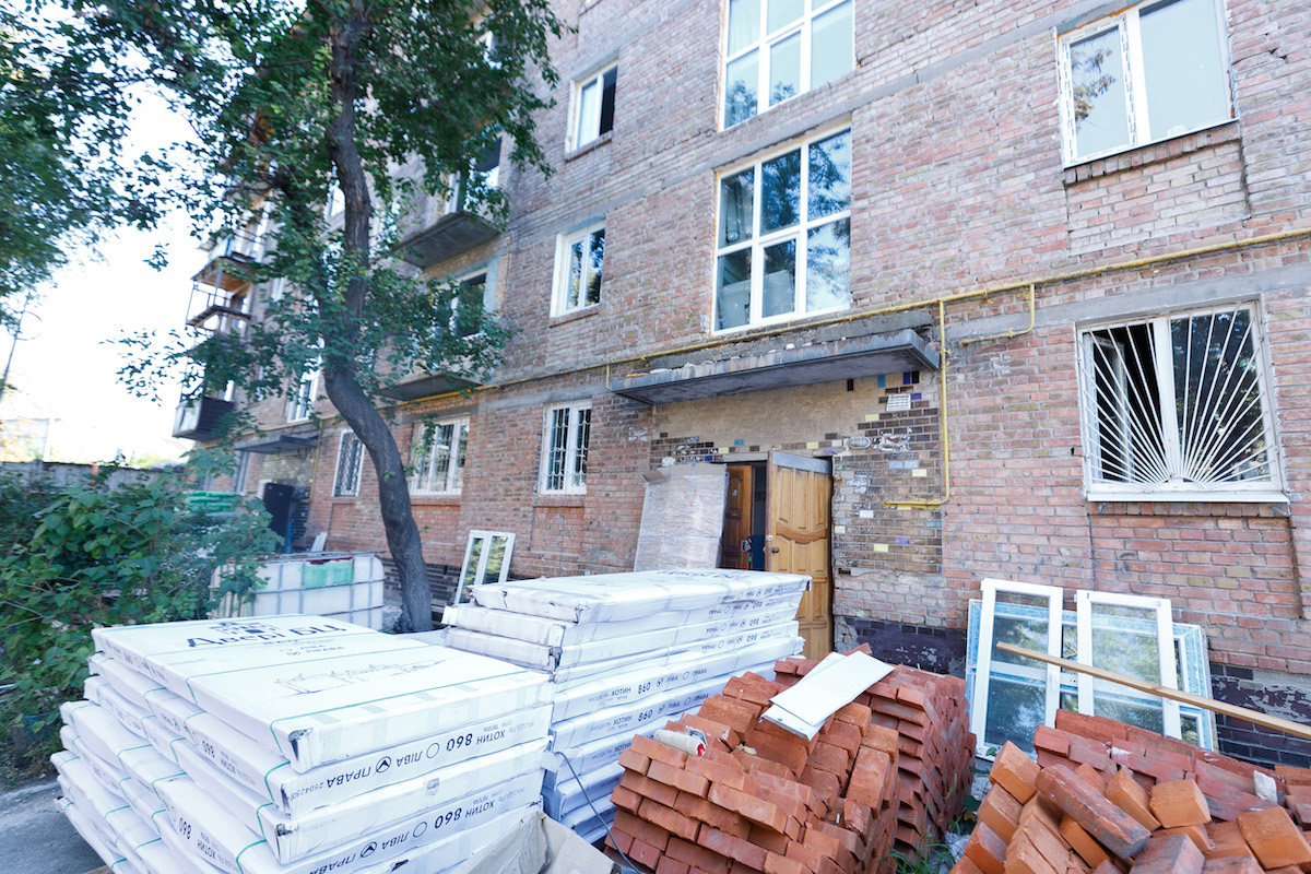 У відремонтованій частині відновлюють скатну покрівлю, замінюють вікна, відновлюють електрику та виконують оздоблювальні роботи у квартирах, налаштовують сантехніку тощо.