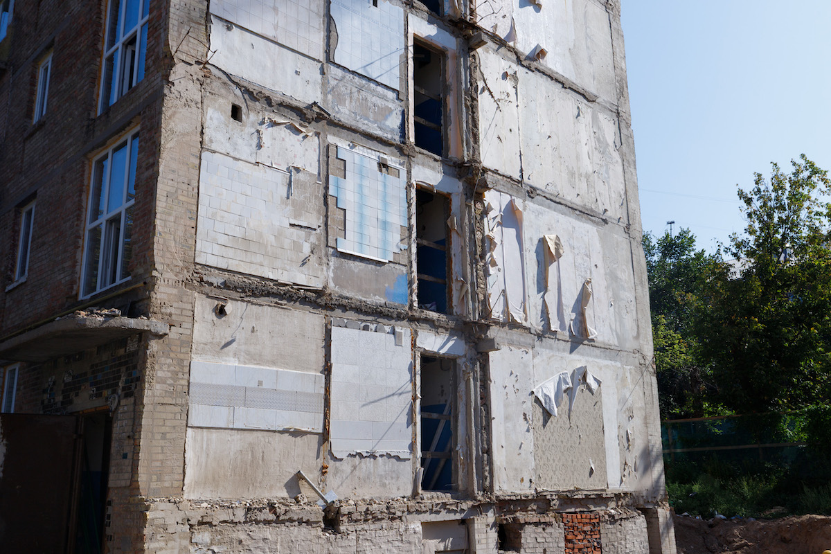 На Сирці відновлюють будинок, у якому торік загинуло 14 людей внаслідок ракетної атаки (фото)