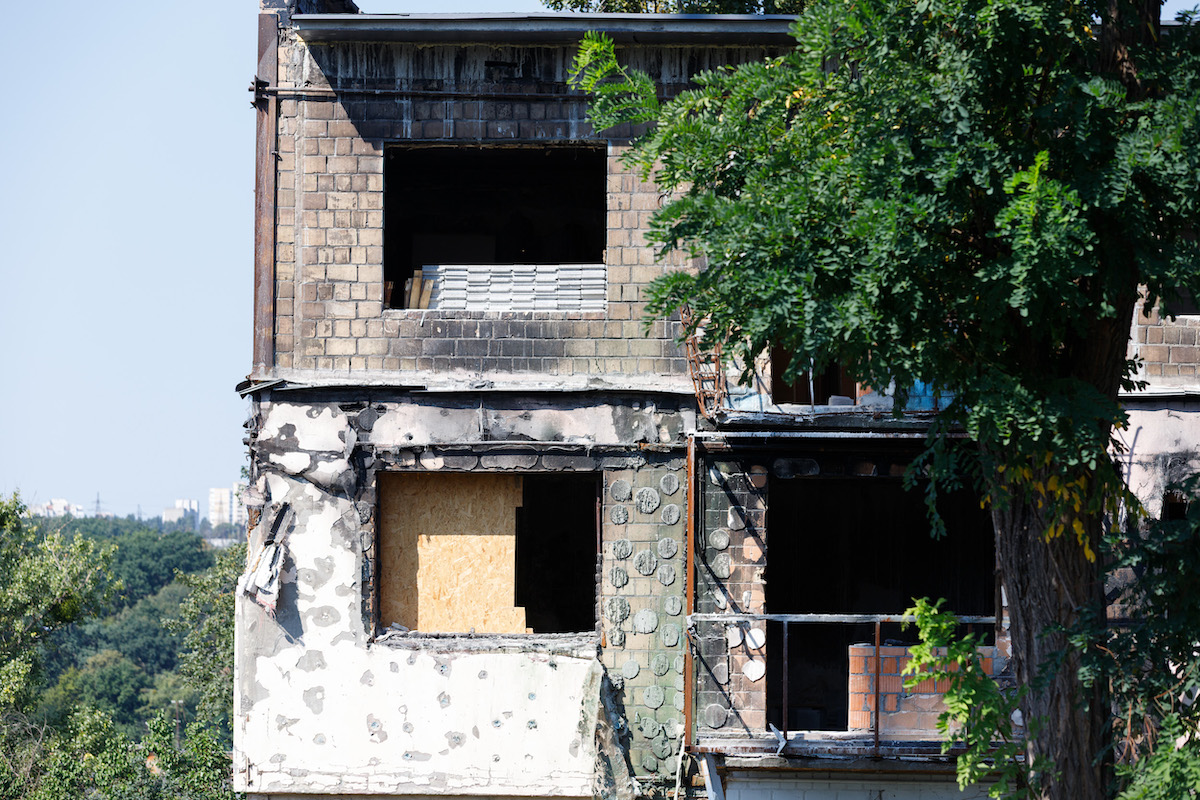 На Сирці відновлюють будинок, зруйнований під час ракетної атаки восьмого липня 2024 року, повідомляє КМДА.
