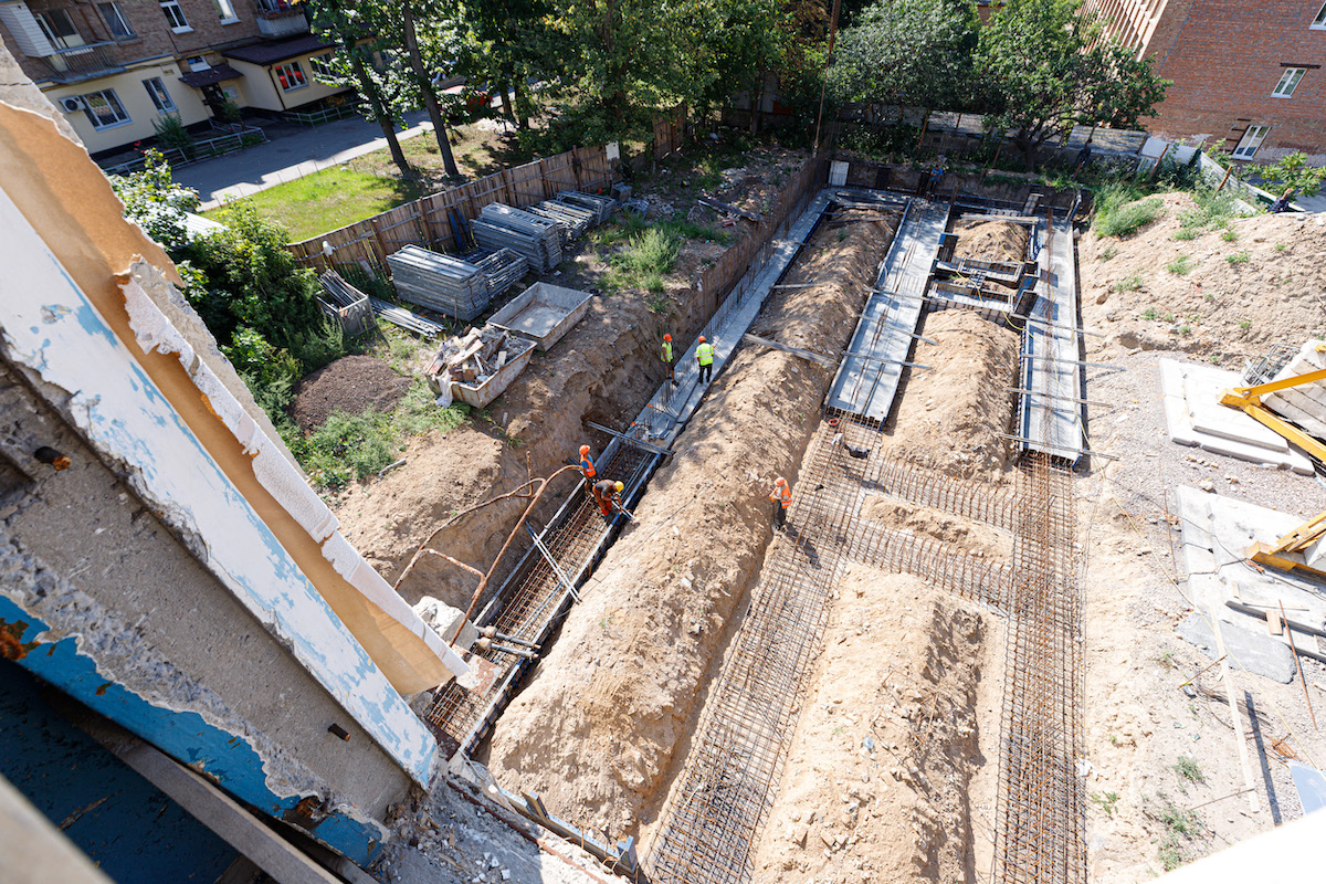 Наразі демонтували п’ятий під’їзд, частково — четвертий і третій. Ця частина будинку буде відбудована: зараз формують котлован, армують і бетонують фундаменти.