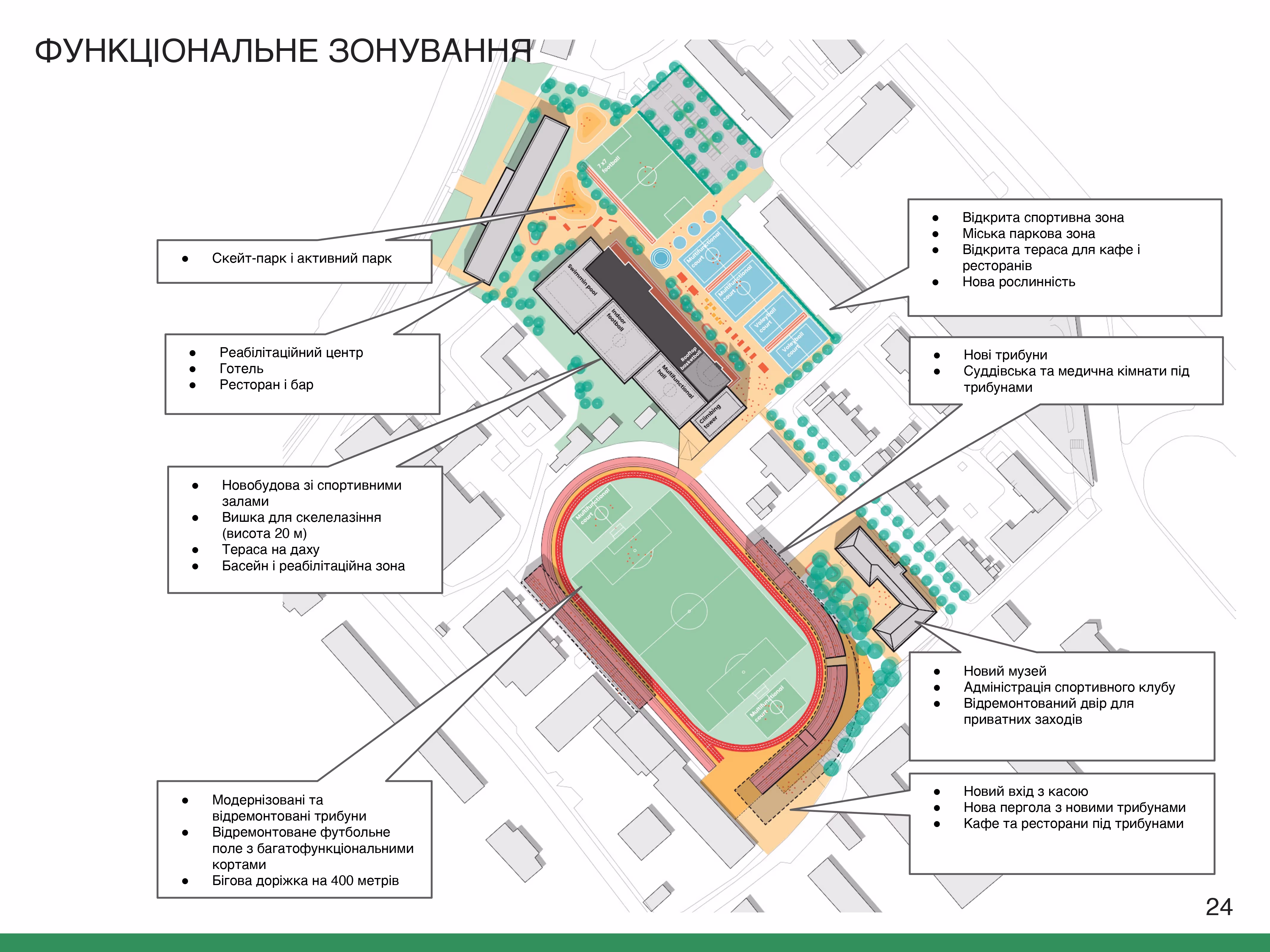 Завдання стояло ширше, ніж просто відновлення зруйнованого спорткомплексу. Йшлося про розвиток усієї території та створення багатофункціонального центру для залізничників і молоді.