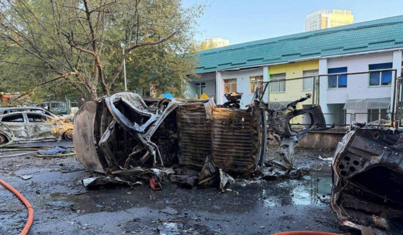 У дворі багатоповерхівки також було пошкоджено припарковані авто.