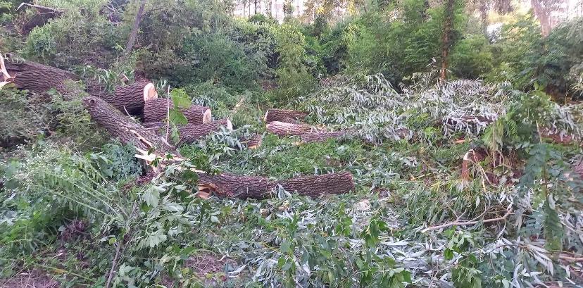Увечері 28 серпня містяни повідомили про незаконну вирубку дерев на території Совських ставків у Києві.