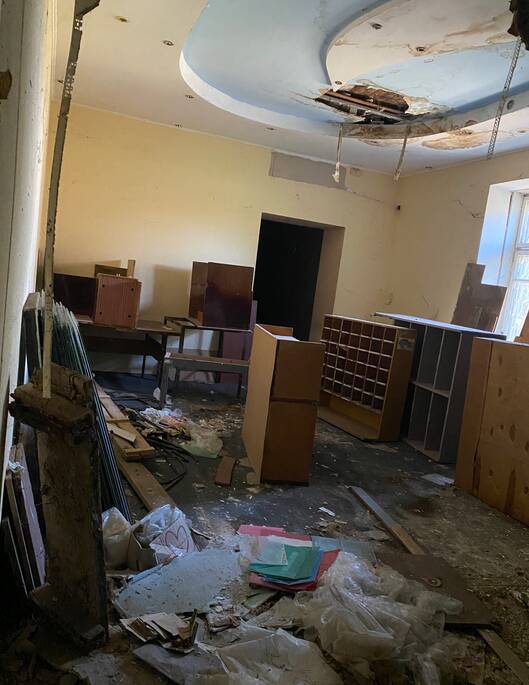 Судячи з фото, всередині приміщення стан поганий: подекуди обвалилася стеля, стіни пошкоджені, а старі меблі так і залишилися на місці.
