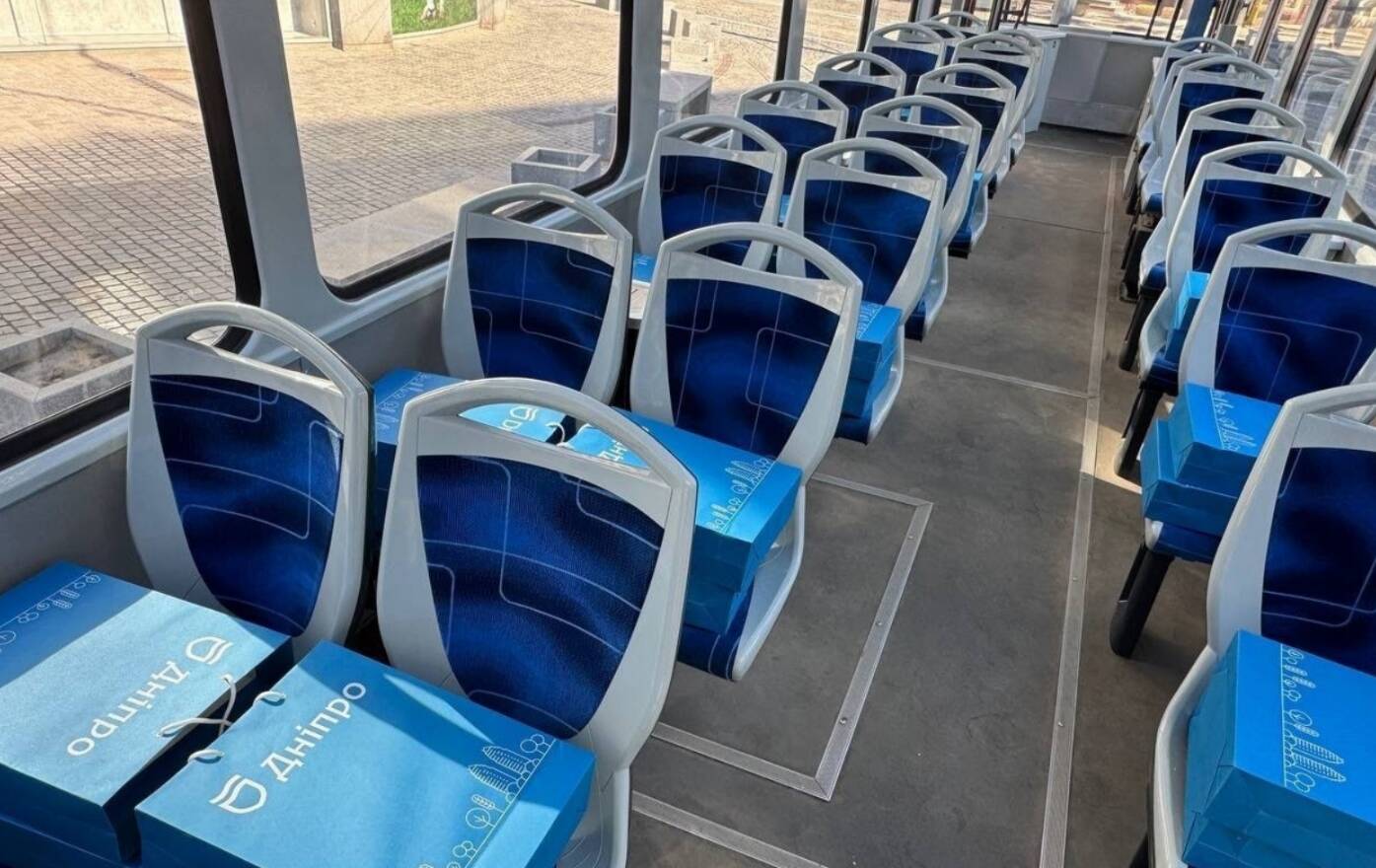 Для них підготували окремий дизайн у міському стилі: гранатовий колір, біла хвиля та портрети відомих дніпрян, а вагони адаптували під колії міста.