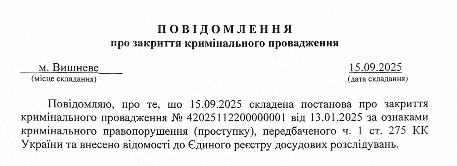А зараз відповідне кримінальне провадження офіційно закрите.