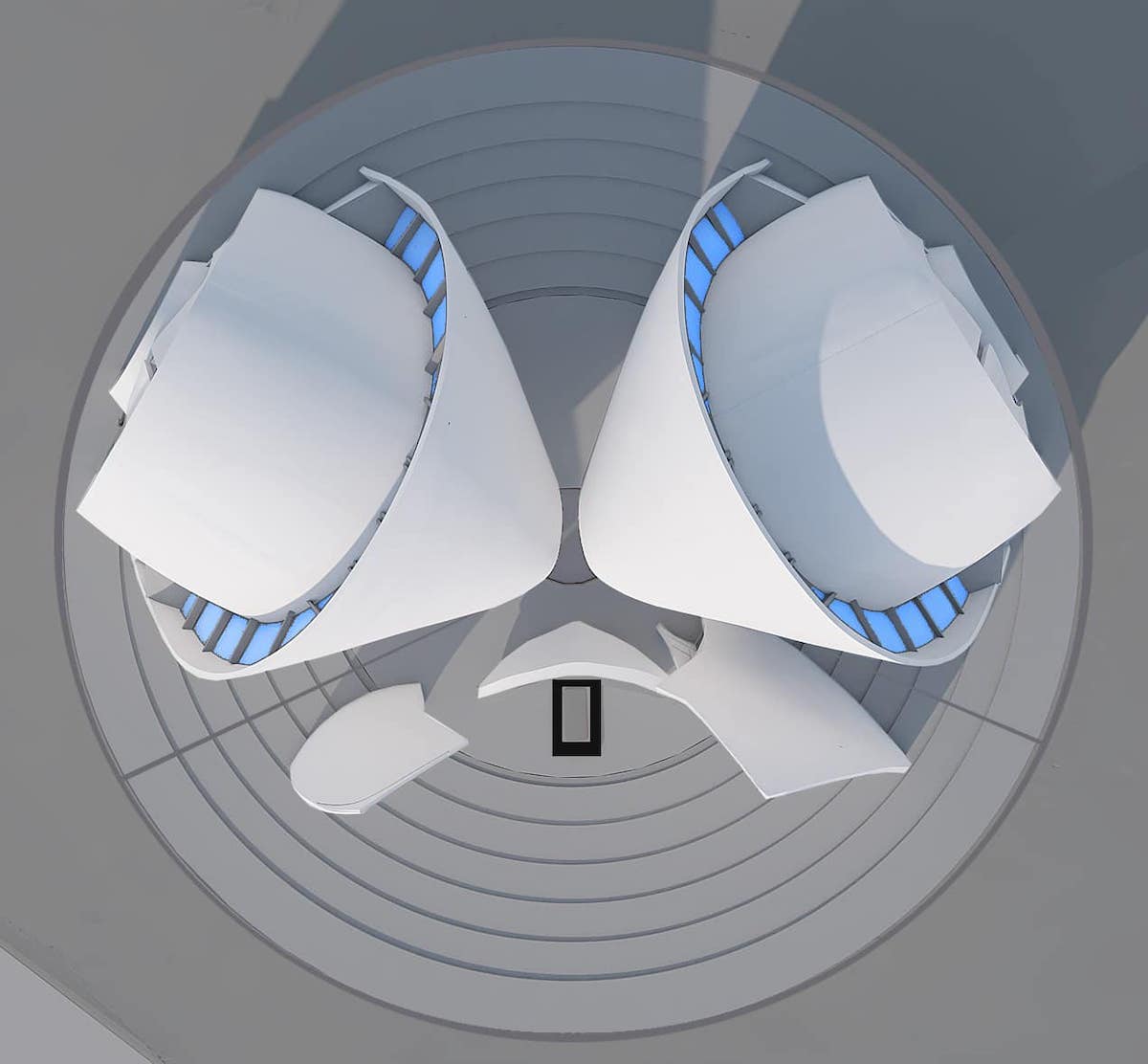 Інтер’єри залів наразі пофарбовано зеленим і брунатним, вистелено ковроліном і декоровано пластиковими вінками. За задумом АРВМ, коліп мав бути білим із блакитним засклінням і мозаїчним декоративним елементом кольору золота у центрі.