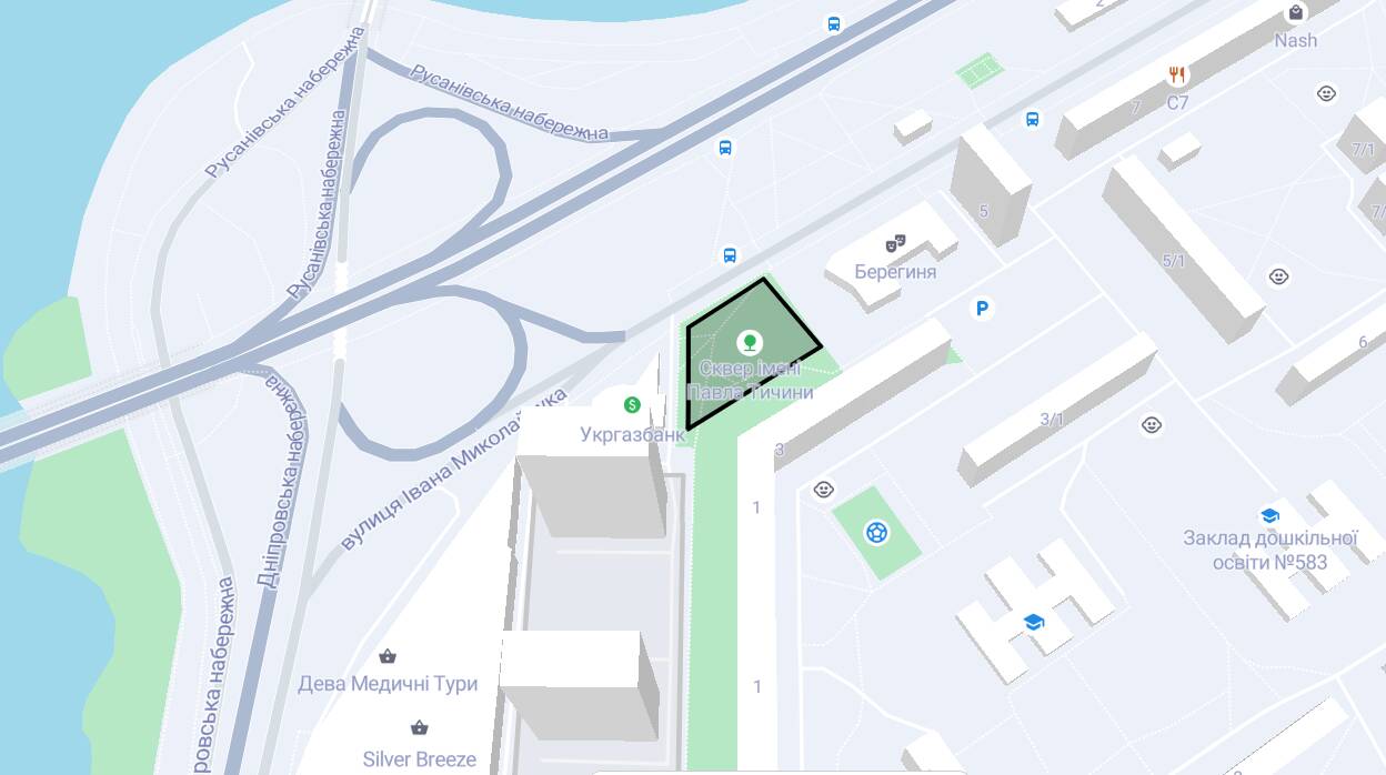 Сам сквер розташований на вулиці Івана Миколайчука, 3, на Березняках, недалеко від заїзду на міст Патона. За даними Opendatabot, 16 вересня цього року активісти об’єдналися в ГО, щоб захищати сквер, а також створили групу у Facebook для інформування мешканців про ситуацію.