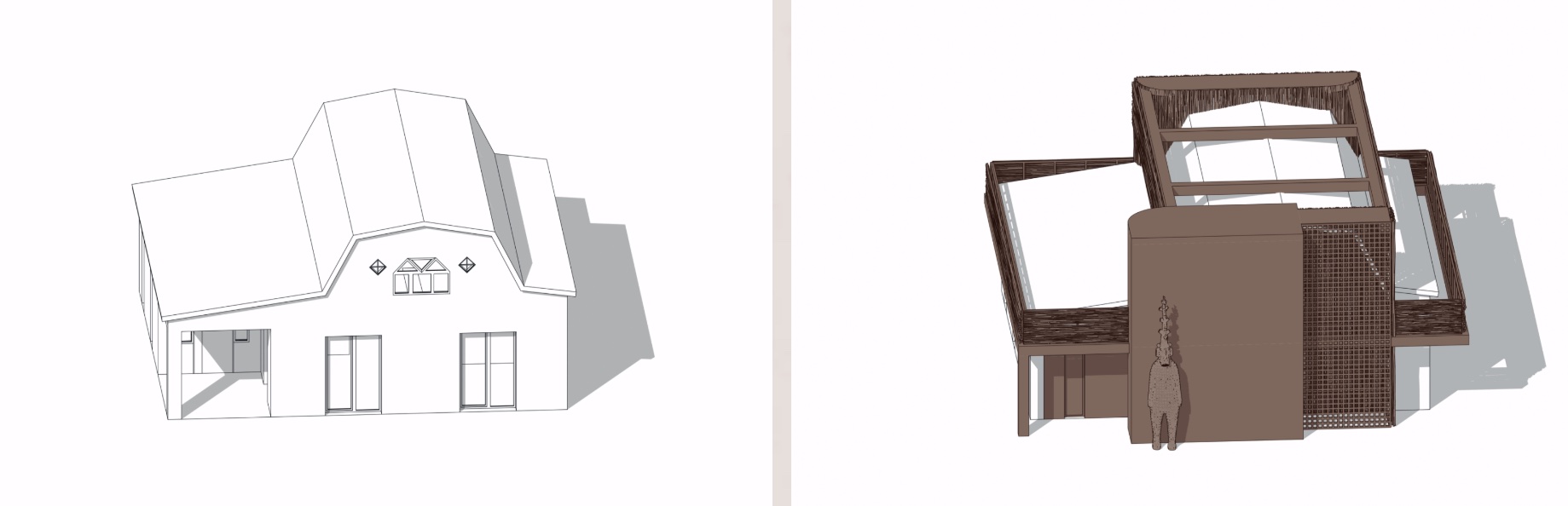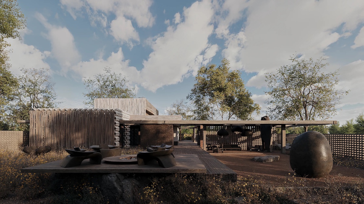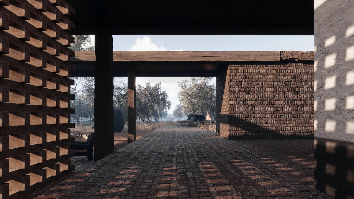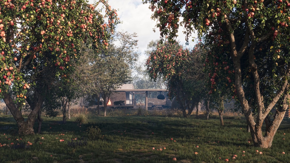 Цегляний каркас будинку зберегли, вкривши його глиною. Панелі з лози відтворюють традиційне українське оздоблення.