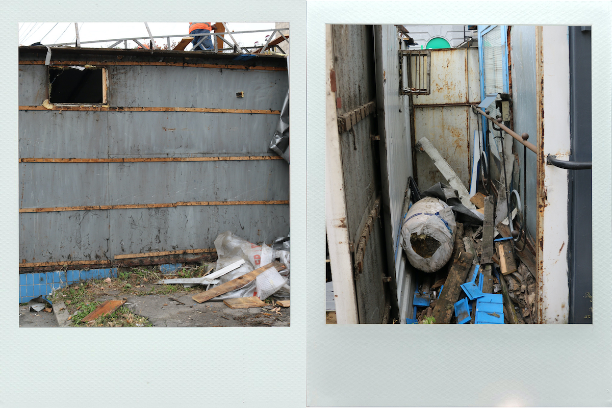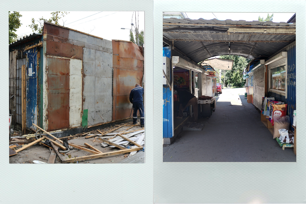 У деяких місцях між кіосками облаштували підсобні приміщення для зберігання сміття чи будівельних матеріалів. Часом добудовували саморобні навіси.