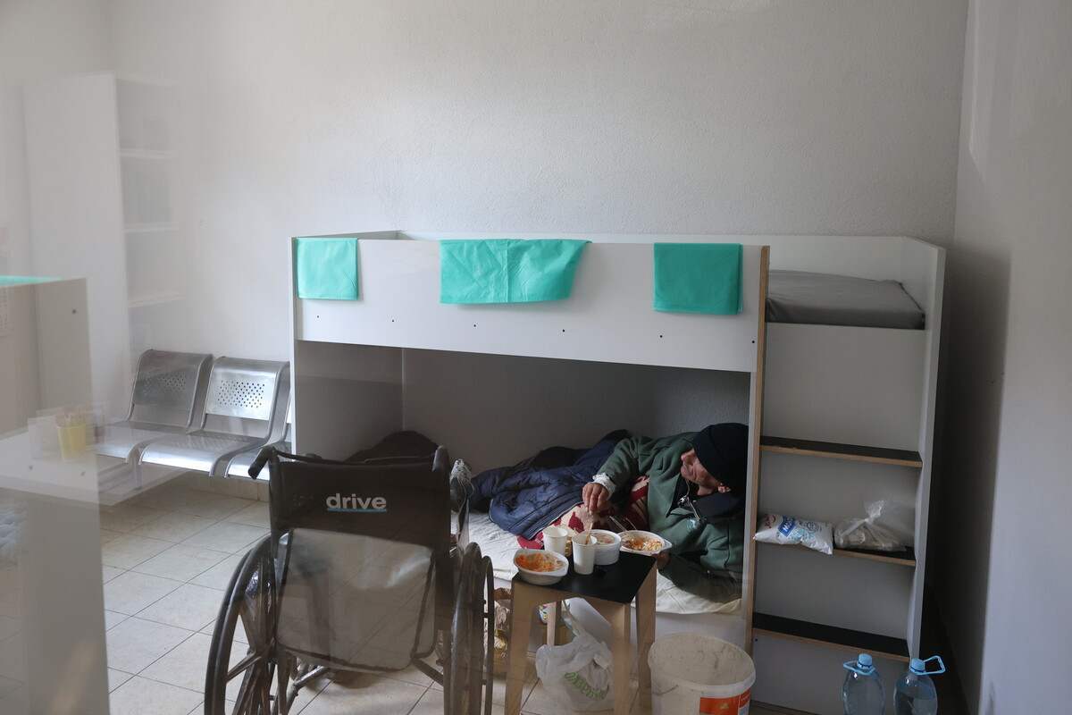 Одним із тих, хто користується послугою денного перебування, є Валерій з Харкова. Зламав ногу на початку війни і евакуаційний поїздом приїхав до Львова. Кілька років працював інструктором в автошколі, потім Валерію ампутували ногу й тепер він пересувається у кріслі. Усі його рідні зараз перебувають за кордоном. Понад три місяці чоловік мешкає у притулку.