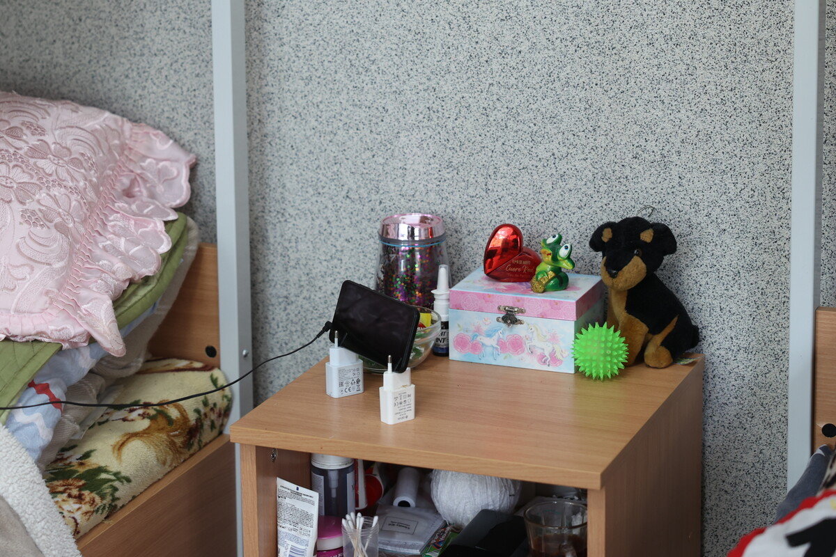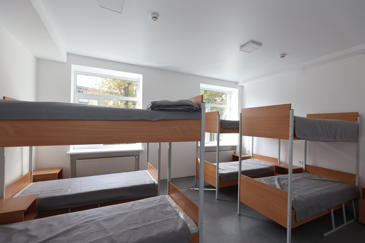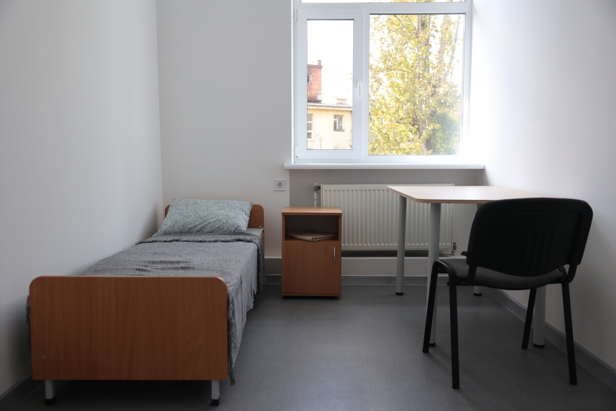 На третьому поверсі облаштували соціальний гуртожиток, де можуть залишатись люди, які знайшли роботу, але поки що не можуть самостійно винайняти житло. У кімнатах є шафа, тумби, стіл. Є спільна кухня.
