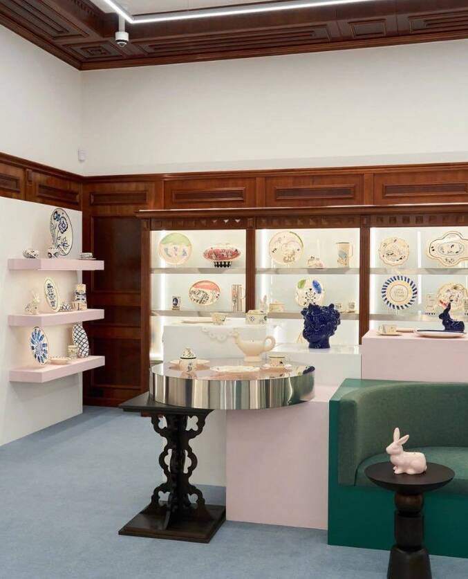 Для цього простору майстри виготовили три унікальні предмети — стіл, дзеркало й стілець. Їх доповнюють роботи NOOM, WOO Furniture та Cegla Studios.