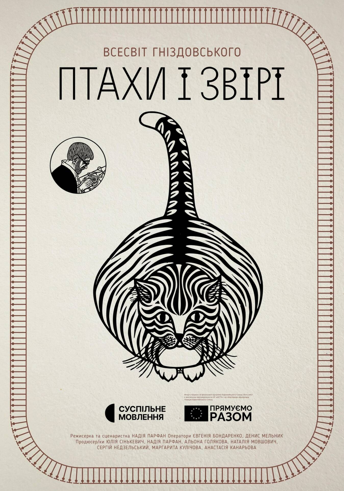 Історію в фільмі «Птахи і Звірі. Всесвіт Гніздовського» показано очима улюбленого художникового кота Жерома — його грає кіт Даня. Шлях митця від таборів для переміщених осіб до міжнародної слави переплітається з досвідом сучасних українських емігрантів.