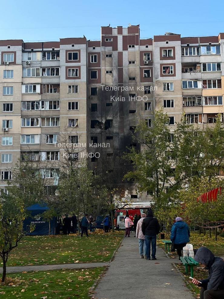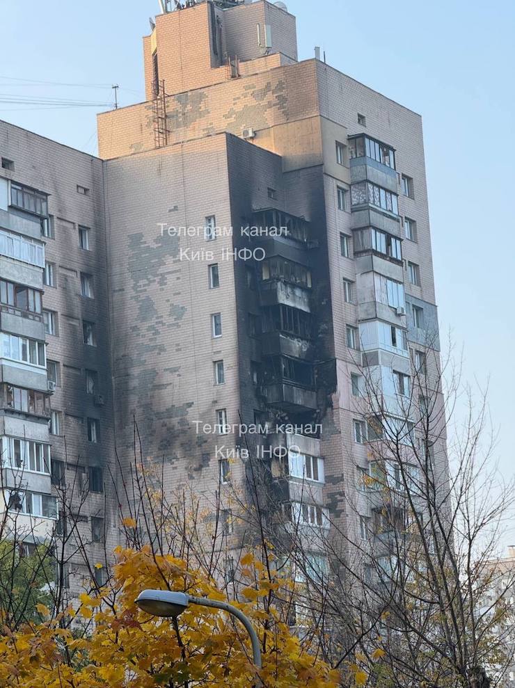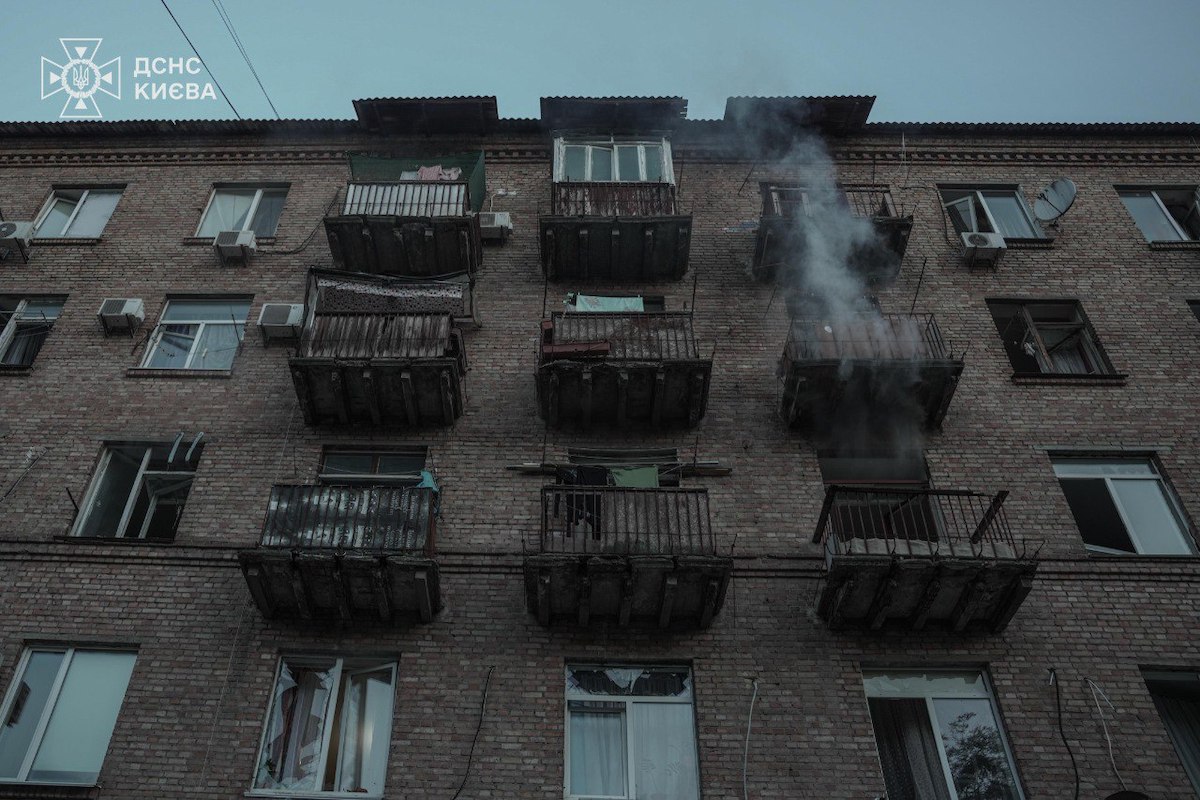 У Дарницькому районі внаслідок влучання безпілотника зайнялася 17-поверхівка, також горіла двоповерхова нежитлова будівля. У Печерському районі влучило у верхні поверхи 25-поверхового будинку. У Деснянському районі пошкоджено фасад 10-поверхівки, горів автомобіль і газова труба.