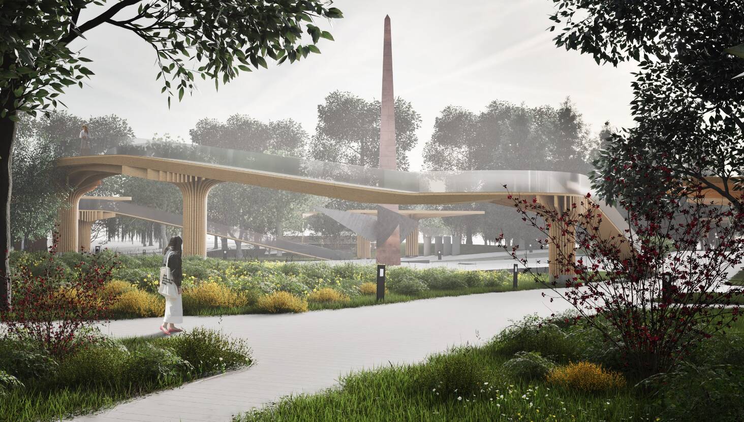 Конкурс тривав з 20 червня по 21 жовтня 2025 року, і на нього надійшло 12 проєктів. Перемогу отримала ідея від Aranchii Architects з Києва, на візуалізації видно, що вони запропонували міст для огляду та прогулянок навколо обеліску.