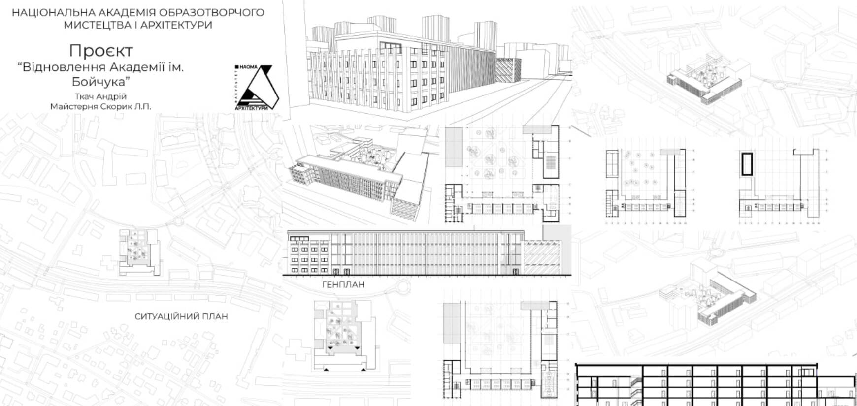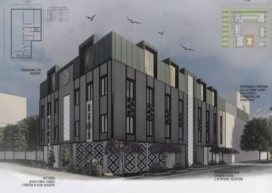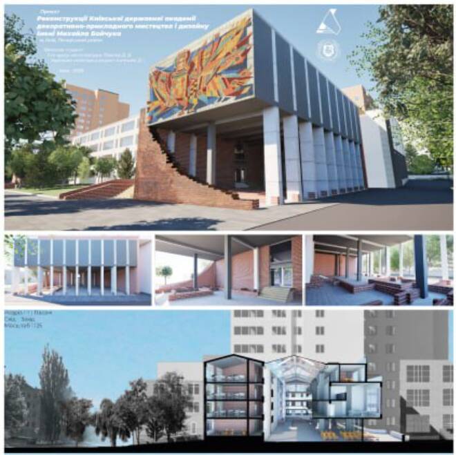 В Київській академії Бойчука показали конкурсні ескізи відбудови зруйнованого корпусу