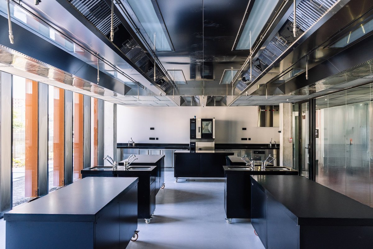 Інші простори — кухні, лабораторії, аудиторії — є гнучкими, їх можна перебудовувати для різних потреб. В інтер’єрі використали природні поверхні, такі як дерево та камінь.