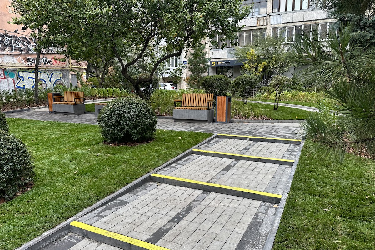 У таких скверах встановили лави, а також облаштували безбар’єрні доріжки та пандуси.