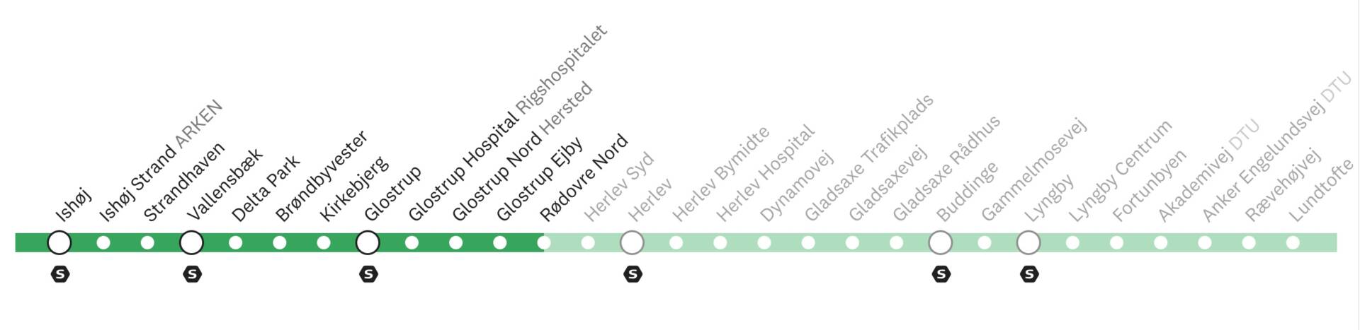 Вся гілка простягатиметься на 27 кілометрів від парку Лундтофте на півночі до станції Ісхой на півдні.