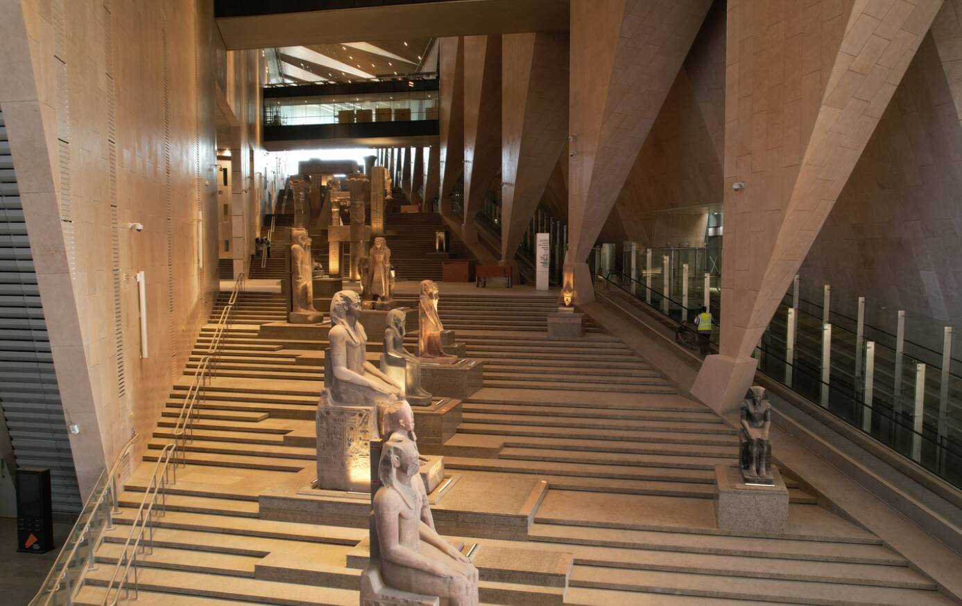 Центральна експозиція Великого Єгипетського музею присвячена скарбам з гробниці фараона Тутанхамона, знайденої у 1922 році. Тут виставлено його золоту маску, трон, саркофаг і тисячі інших предметів. У головній залі тепер стоїть гігантська статуя Рамзеса II, яка раніше десятиліттями прикрашала площу в центрі Каїра.