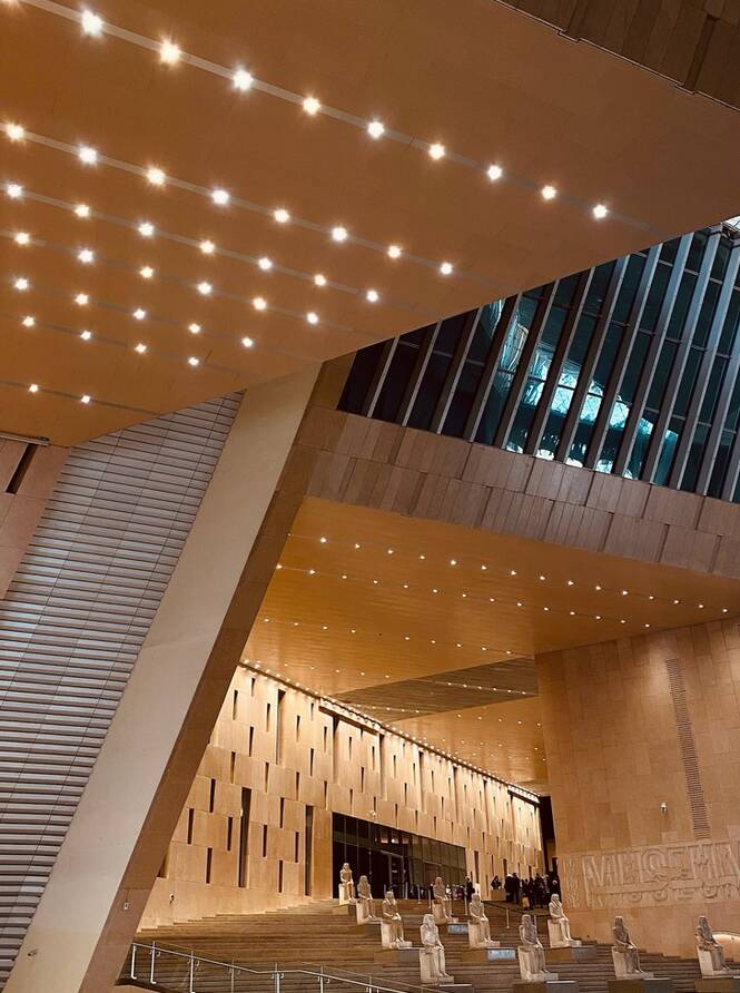 Новий музей має мінімалістичний дизайн, який перегукується з формами пірамід. Це створює разючий контраст із старим Єгипетським музеєм біля площі Тахрір, де експозиції давно потребували оновлення.