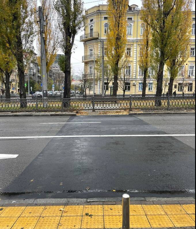 Транспортний активіст Олександр Гречко повідомив, що символічний перехід біля метро «Університет», який намалювали активісти, уже зафарбували.