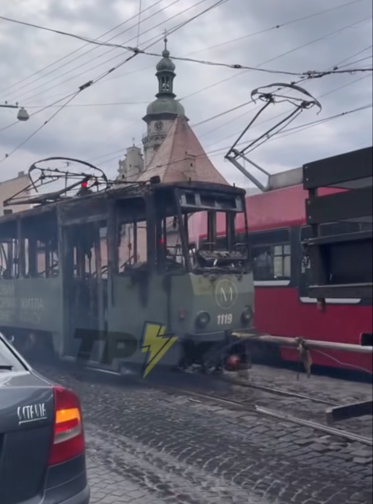 У центрі Львова вщент згорів трамвай. Пасажири встигли вибігти