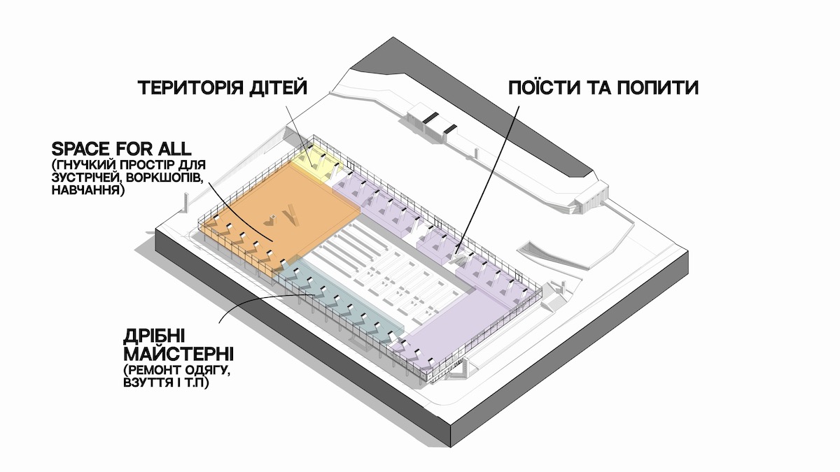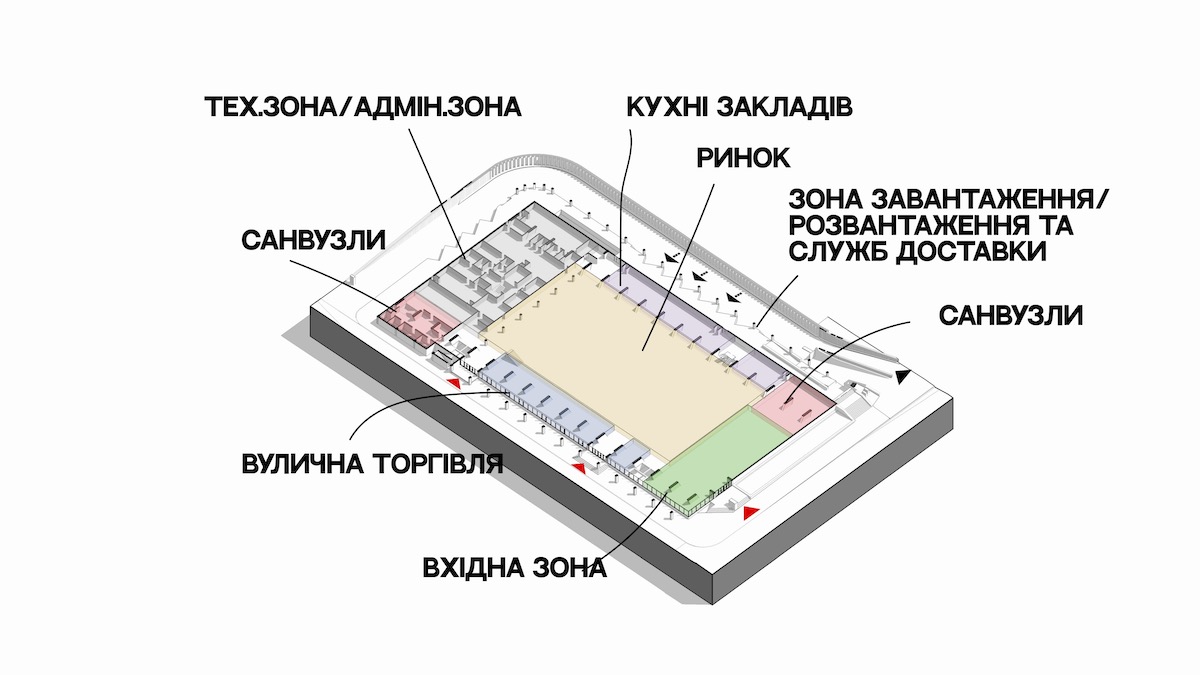 Основна функція ринку — торгівля продуктами, — буде збережена. Водночас додаються гастрономічні простори, зона для подій, місце для локальних виробників і фермерів.