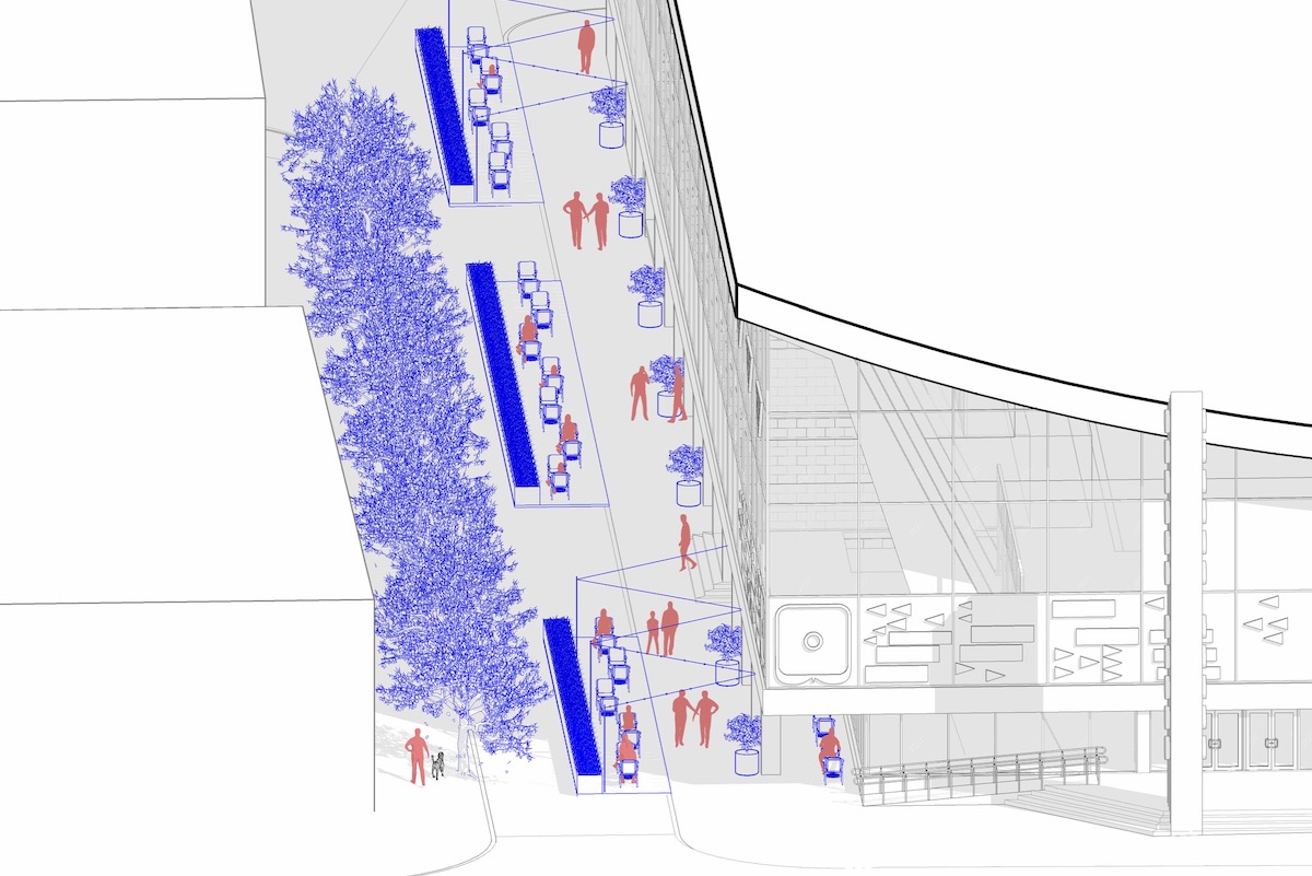 Також буде створено пішохідні зони й оновлено простір на Житньоторзькій вулиці. Так, на першому рівні передбачено зону для вуличної торгівлі та розміщення терас закладів.