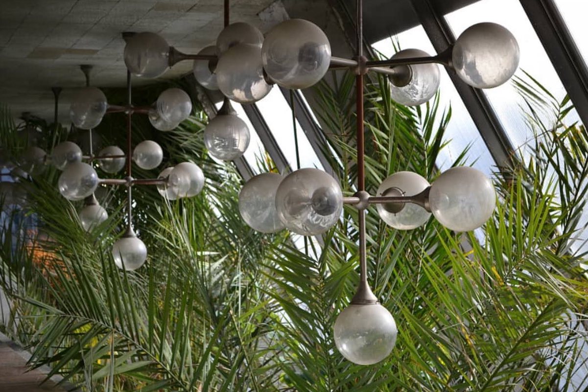 Люстри було створено спеціально для проєкту головного архітектора нових корпусів КПІ Володимира Лиховодова. Світильники у вигляді молекул мали підкреслити структуру корпусу і зимовий сад всередині.