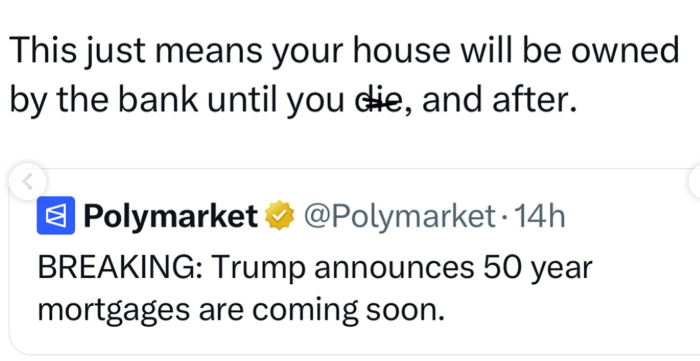 Більшість жартів присвячена тому, що імовірніше іпотеку доведеться виплачувати до самої смерті, а також тому, що загалом вийде велика переплата.
