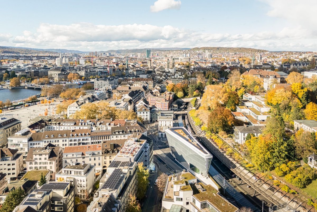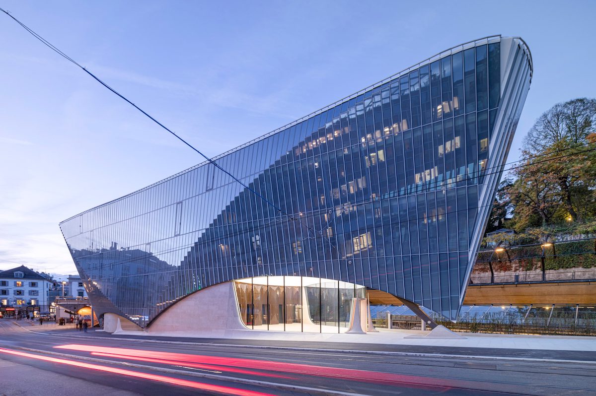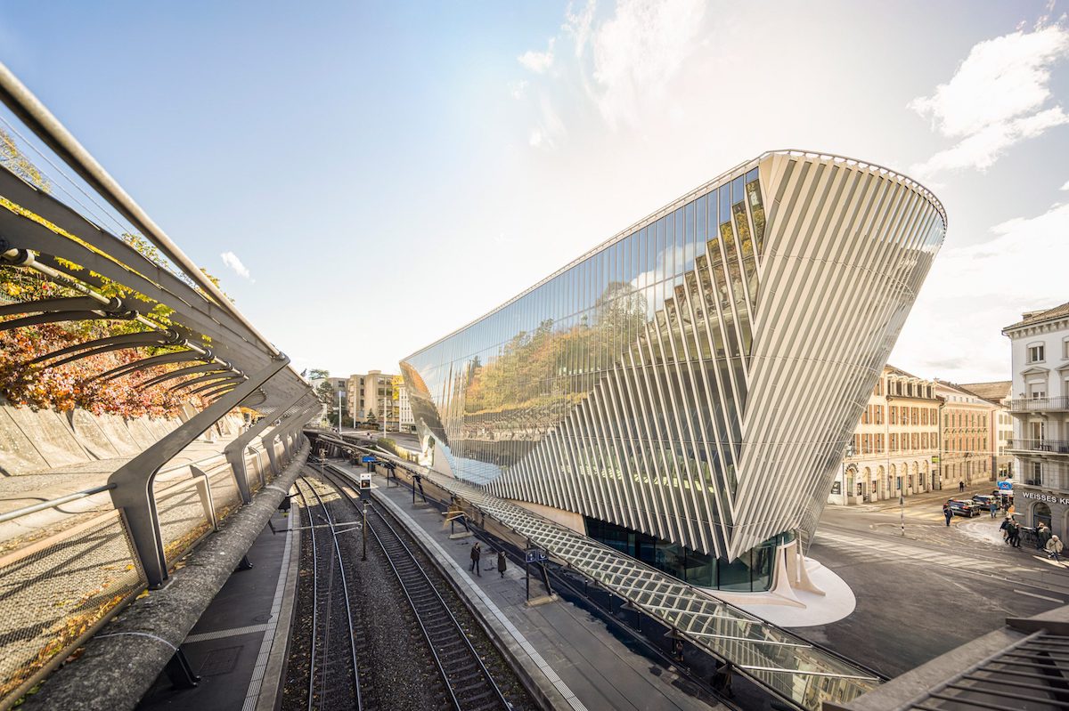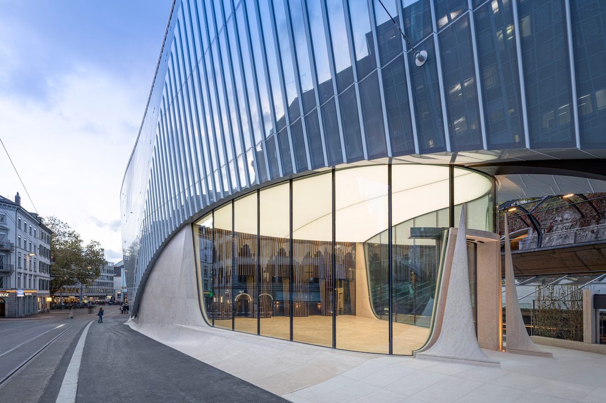 У Цюриху звели офісну будівлю за проєктом швейцарсько-іспанського архітектора Сантьяго Калатрави. Будівля зі скла та каменю є частиною транспортного хабу залізничного вокзалу Штадельхофен.