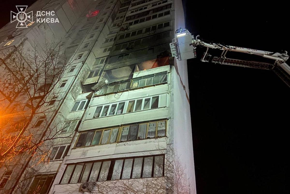 У Дніпровському районі горів перший поверх п’ятиповерхівки та ще одиин житловий будинок, де пошкоджено 19-21 поверхи.