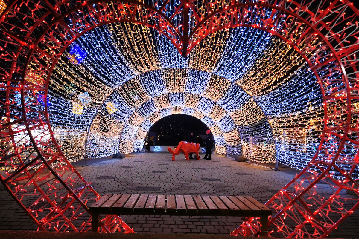 Цьогоріч експозиція стане масштабнішою. Там будуть чарівний капелюх 14 метрів заввишки; 20-метровий динамічний тунель, де тисячі ліхтариків створюють ефект світлового потоку; казкова резиденція гнома; ялинка в центрі та гігантські світлові жуки поміж дерев.