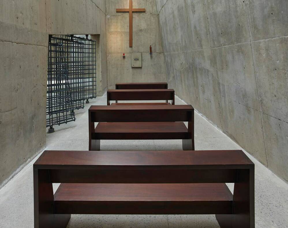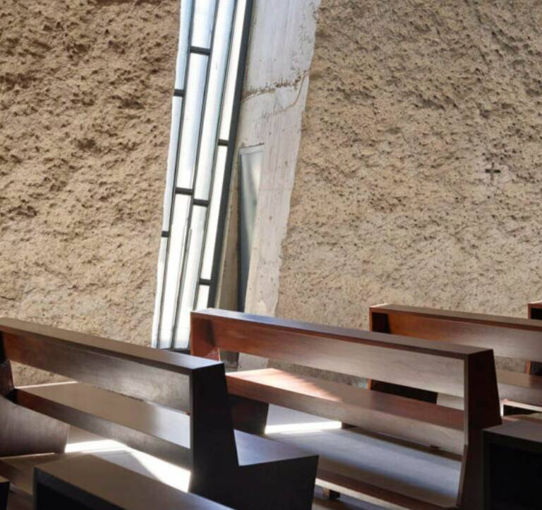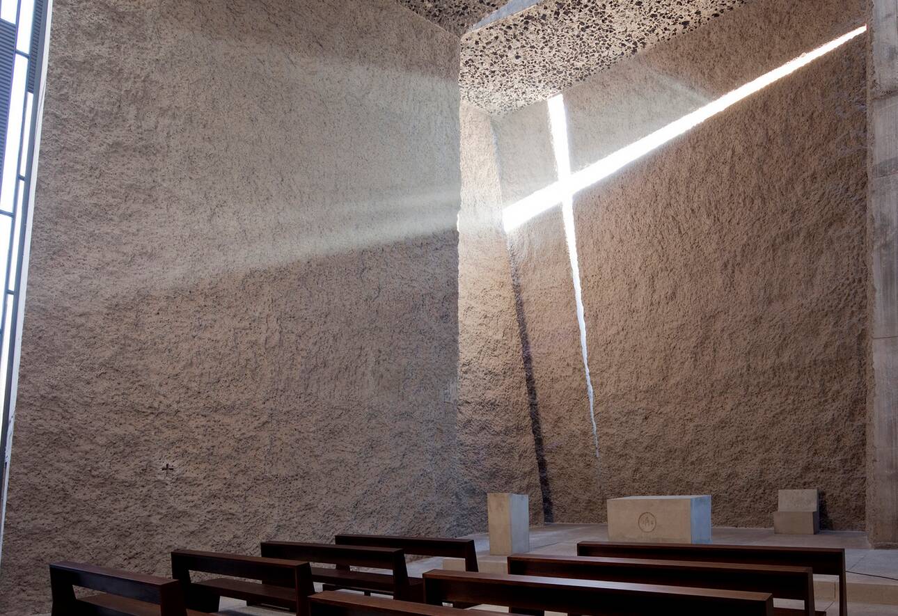 Додатково світло потрапляє через верхні отвори та високий незасклений хрест. Протягом дня світло перемішується, освітлюючи різні зони будівлі.