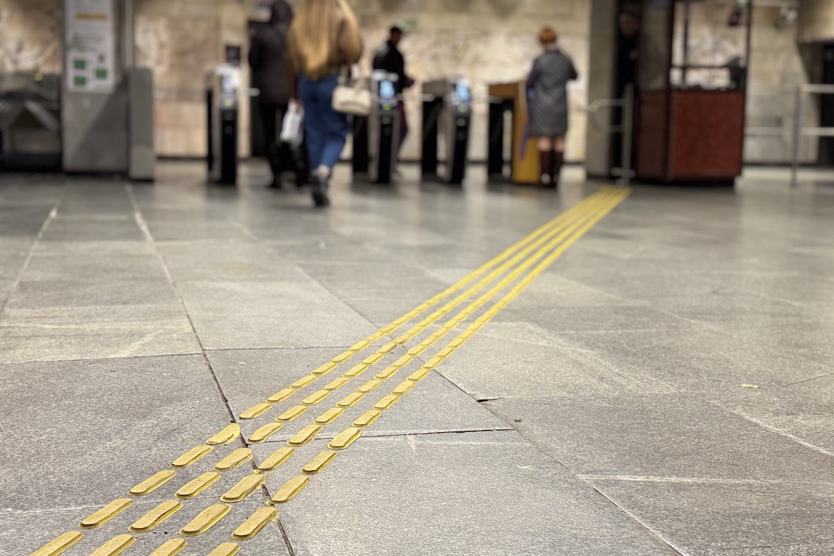 На станціях київського метро встановлюють тактильні смуги, не чекаючи на ремонт
