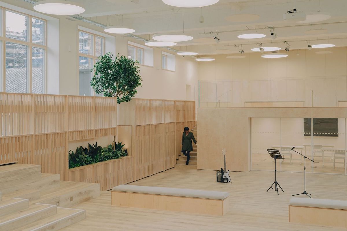 Закинутий шкільний басейн у лондонському коледжі Волтем-Форест перетворили на освітній простір. Проєкт розробила студія DERA, повідомляє Yatzer.