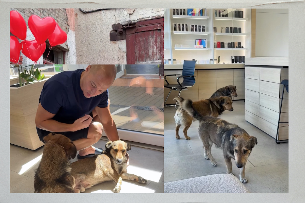 Три роки тому Олексій, власник магазину електроніки, помітив, що через дорогу живуть п’ятеро бездомних псів — три хлопчика та дві дівчинки. Чоловік почав підгодовувати тварин.