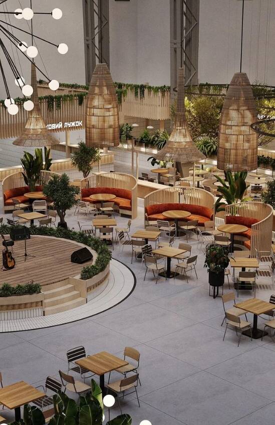 Під дахом ринку розмістяться 17 фудкорнерів і бар. У кожного буде своє меню. Загалом планують близько 400 місць для гостей і невелику сцену для подій
