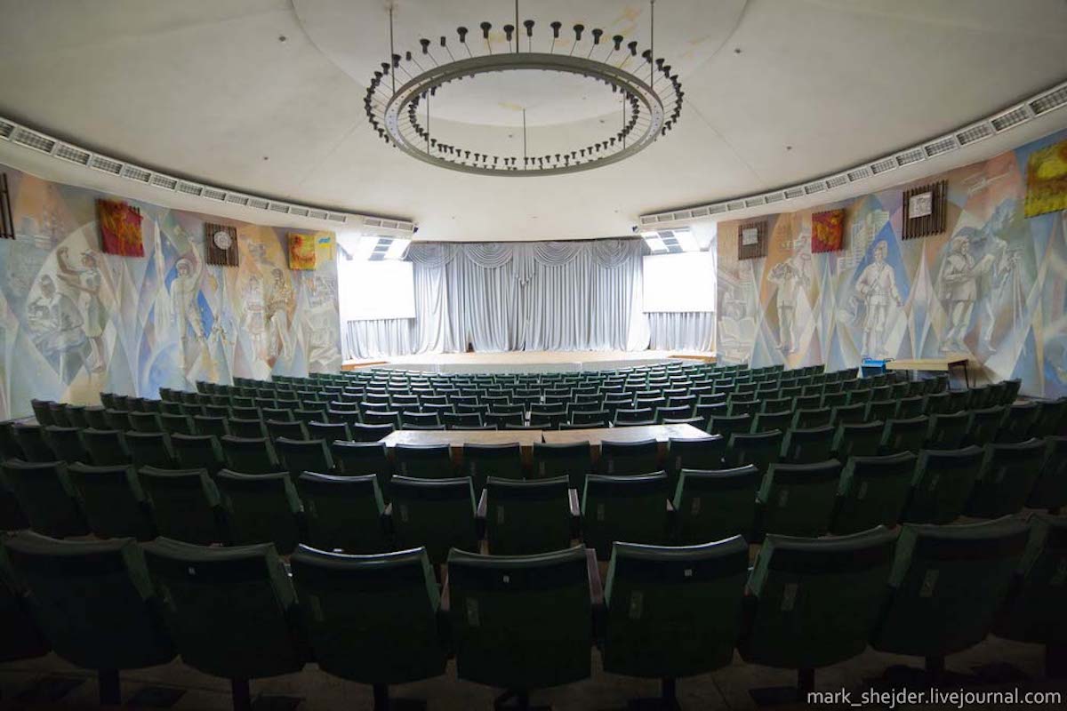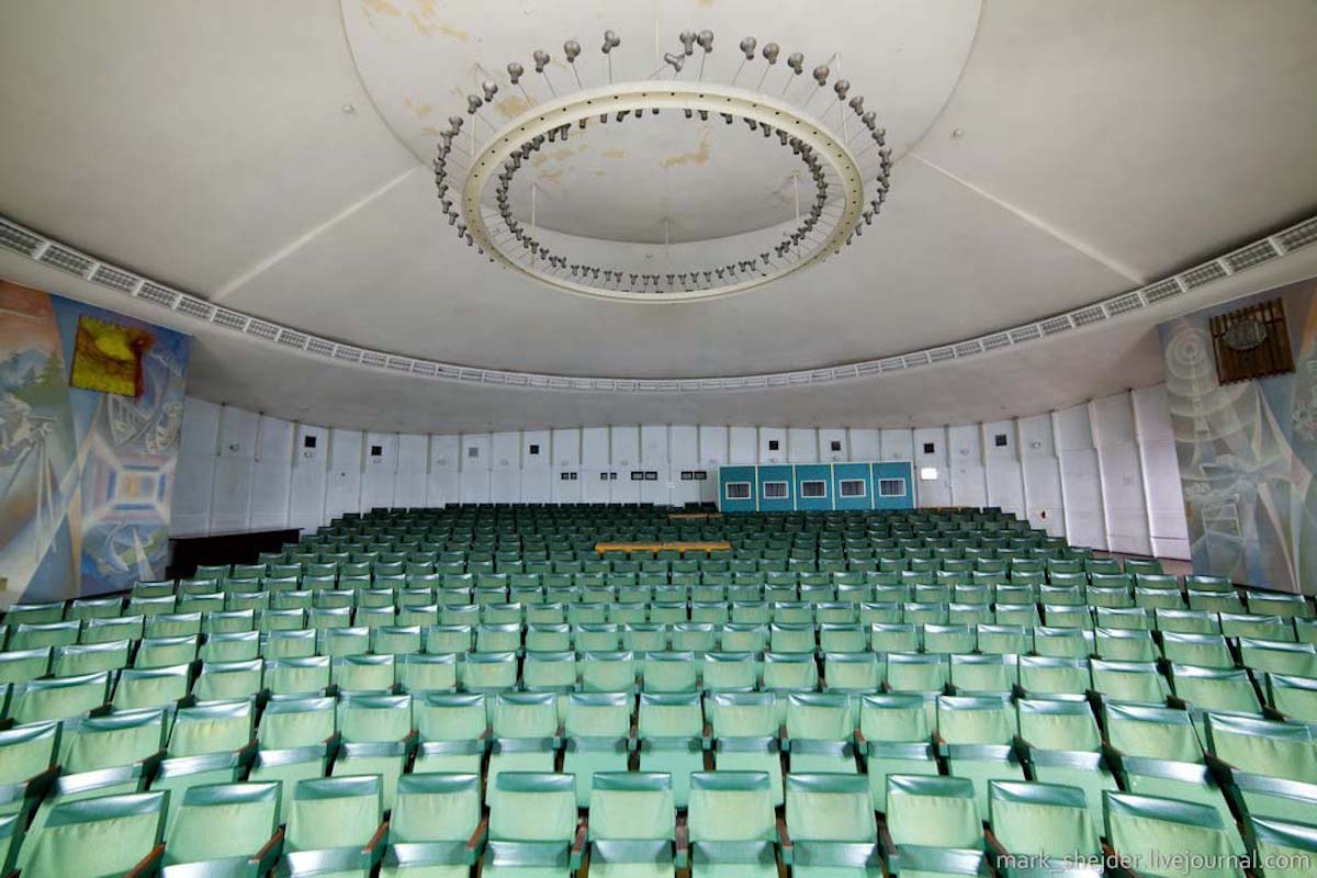Дослідниця мистецтва модернізму Олена Борисова зауважує, що Юр’єв замислював у Тарілці установку для демонстрації колірної музики — «кероване» північне сяйво. Однак ще на початку 1960-х Микита Хрущов оголосив війну абстракції, і залу натомість використовували для зборів і перегляду фільмів, а стіни прикрасили типовими розписами.