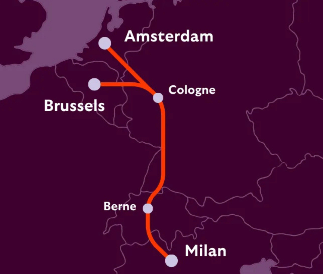 У середині червня з’явиться нічний поїзд між Амстердамом і Міланом. Він так само курсуватиме тричі на тиждень. Потяг зупинятиметься у Кьольні, Берні, Брігу та Стрезі. Вирушатиме з Амстердаму приблизно о 19:00 та прибуватиме до Мілану вранці до 10:00.