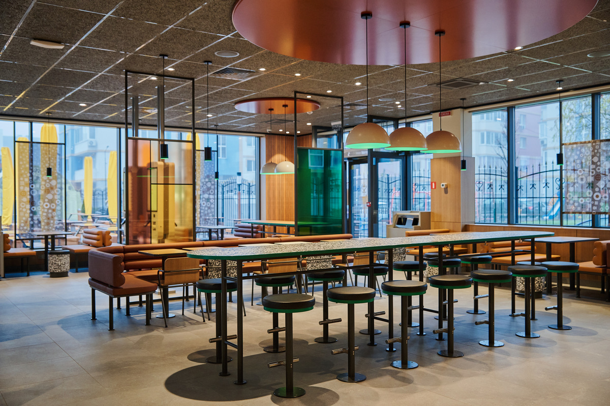 Доступні всі основні канали: замовлення через п’ять подвійних терміналів самообслуговування, McDrive із двома лініями видачі, а також сервіс доставки МакДелівері. Зала та доставка працюють щодня з 7:00 до 23:00, а McDrive — з 5:00 до 23:30. Під час повітряної тривоги заклад тимчасово припиняє роботу й відновлює протягом години після відбою.