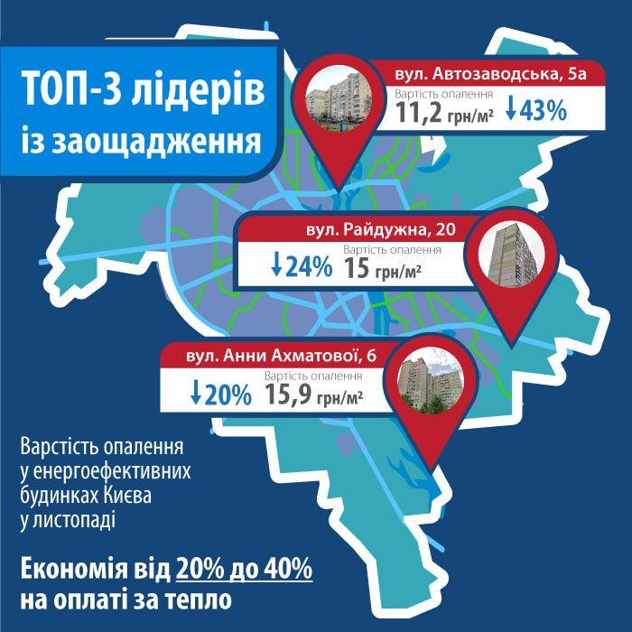 У листопаді вартість опалення одного квадратного метра в енергоефективних будинках становила близько 11–16 гривень. Для порівняння, мешканці інших багатоповерхівок, що не провели енергомодернізацію, платили в середньому по 19,8 гривні за метр.